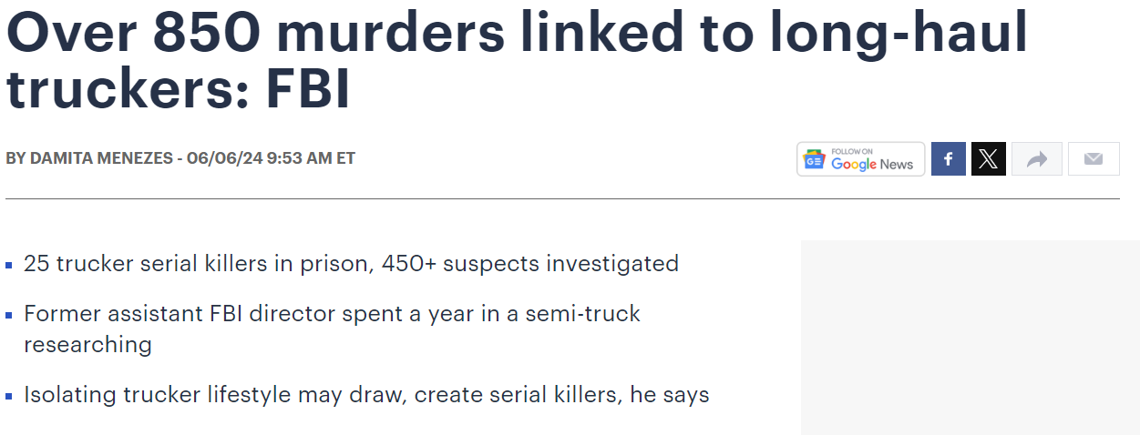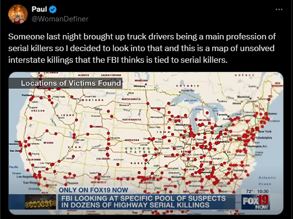 So, are all truckers serial killers? Of course not. But there are a few. Keep your doors locked when at truck stop 😉