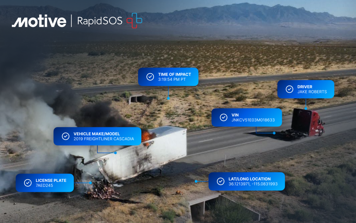ELD and telematics provider Motive recently added a new emergency response feature to its AI-powered Integrated Operations Platform through a partnership with RapidSOS. The first-of-its-kind service is designed to expedite emergency response in the event of a severe collision to quickly dispatch emergency services.
