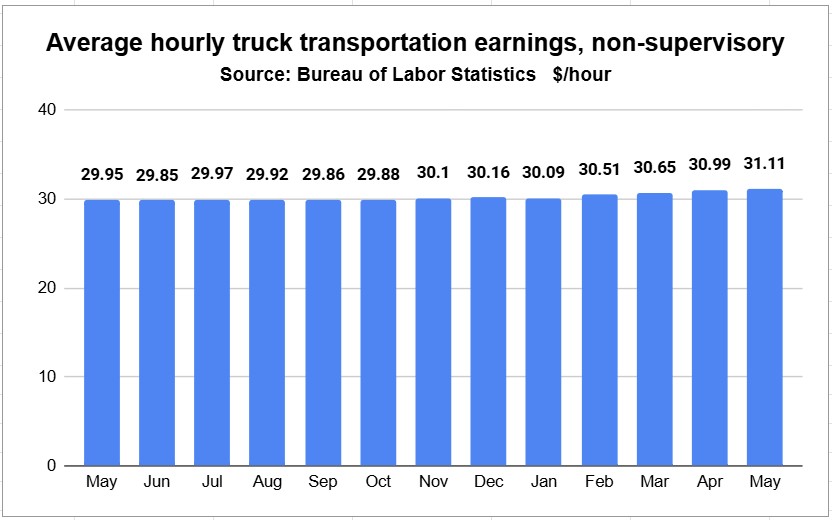 But another set of data, that of the Bureau of Labor Statistics, recently has showed some stronger gains not specifically for drivers but in the category of non supervisory and production employees in the BLS’s truck transportation sector. Drivers would be in that category.