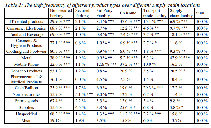The Becker Logistics report also examined a Swedish study on cargo theft risk.