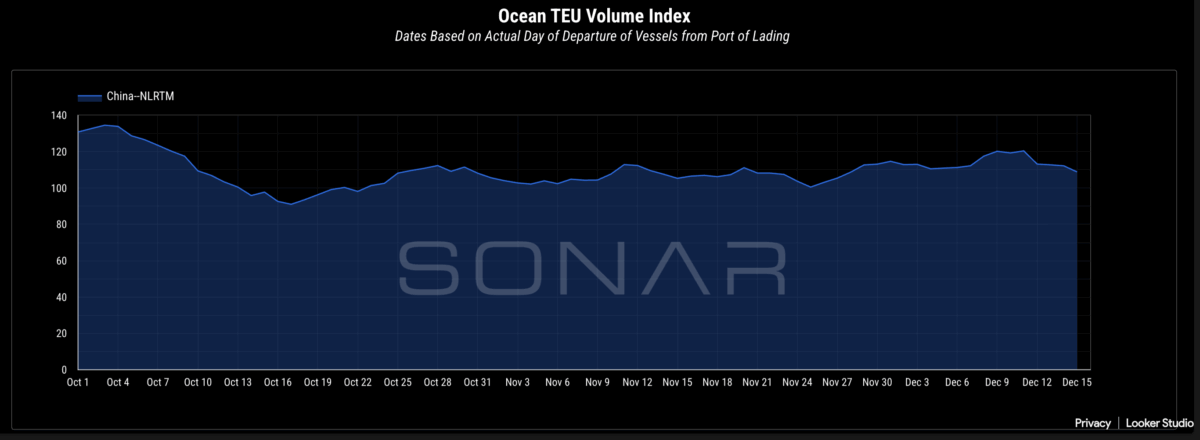 “Slumping Q4 demand, in addition to growing fleets, is an important factor to rate levels,” Levine said, “making planned mid-month GRIs unlikely to hold and a more sustained rate rebound more likely only as we get closer to Lunar New Year.” That’s when shippers rush to move orders before Chinese factories close for two weeks.