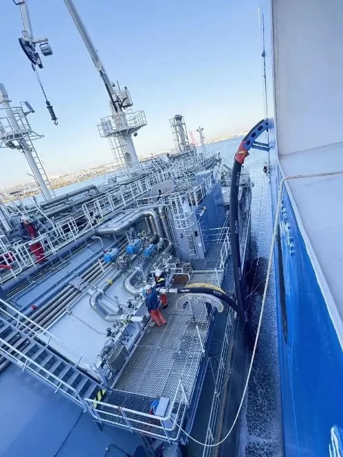 In recent years, alongside its strong performance in traditional ship fuel supply, CHIMBUSCO has closely monitored developments in alternative ship fuel markets. On November 10, 2023, CHIMBUSCO Guangzhou completed its first LNG refuelling operation for the “Hangli 868” ship, introducing green energy to inland waterway shipping.