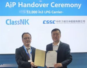 ClassNK has issued an Approval in Principle (AiP) for a 13,000 m³ LPG carrier developed by CSSC Huangpu Wenchong Shipbuilding Co., Ltd. The certificate handover took place at Marintec China 2025.