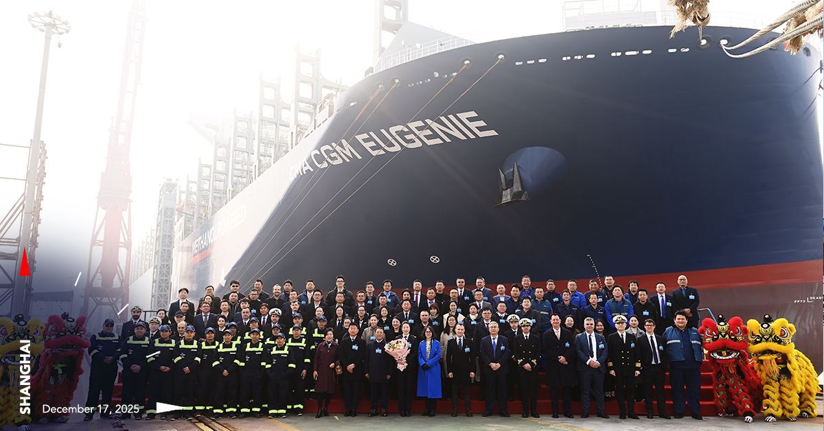 CMA CGM celebrated the naming of its new 15,000 TEU dual-fuel methanol vessel, CMA CGM EUGENIE. The ceremony was attended by Captain Svilen Santana, the vessel’s master, and Professor Bai Xiang’en of Shanghai Maritime University, who served as Godmother, along with Esra Bora, General Manager of CMA CGM China.