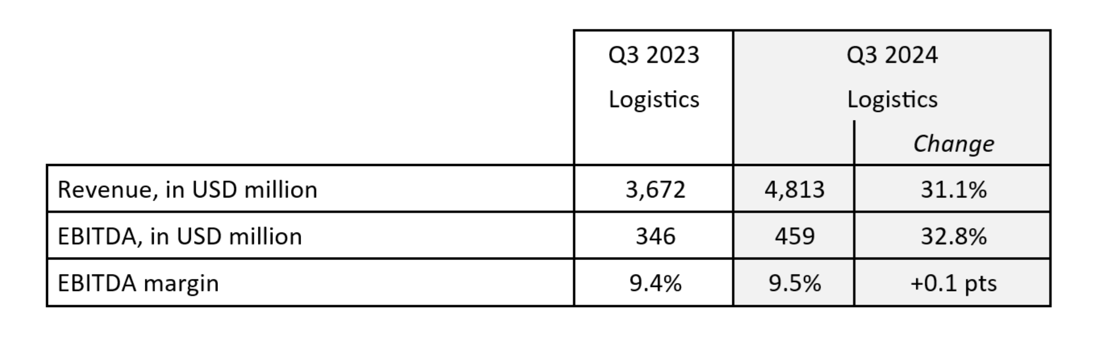 In the third quarter, the Group’s logistics operations continued to expand, driven particularly by growth in Contract Logistics and the impact of integrating Bolloré Logistics into the consolidation scope since February 2024.