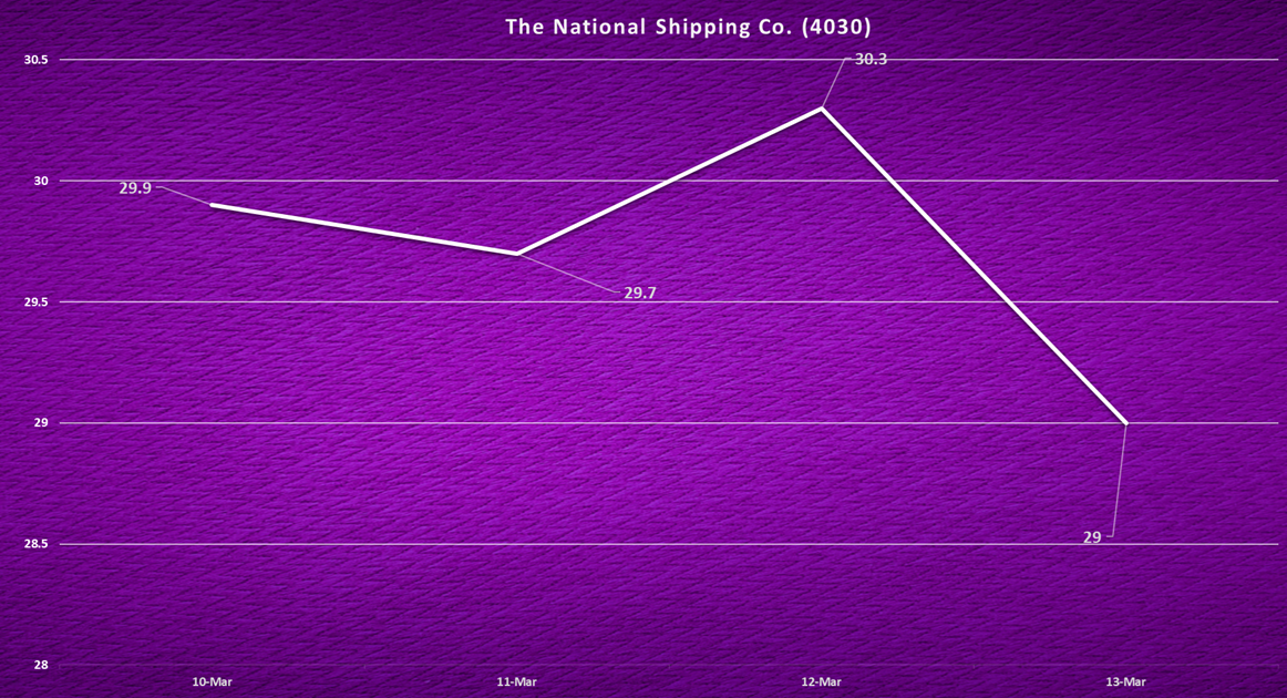 Bahri exhibited moderate volatility, peaking at SAR 30.3 before ending the week at SAR 29. As a leading tanker operator, the company’s performance is often influenced by oil transportation demand. The fluctuations indicate mixed market sentiment, likely due to varying oil price trends and demand outlooks. With the global energy market remaining uncertain, Bahri’s near-term movements will depend on crude shipping rates and geopolitical factors.