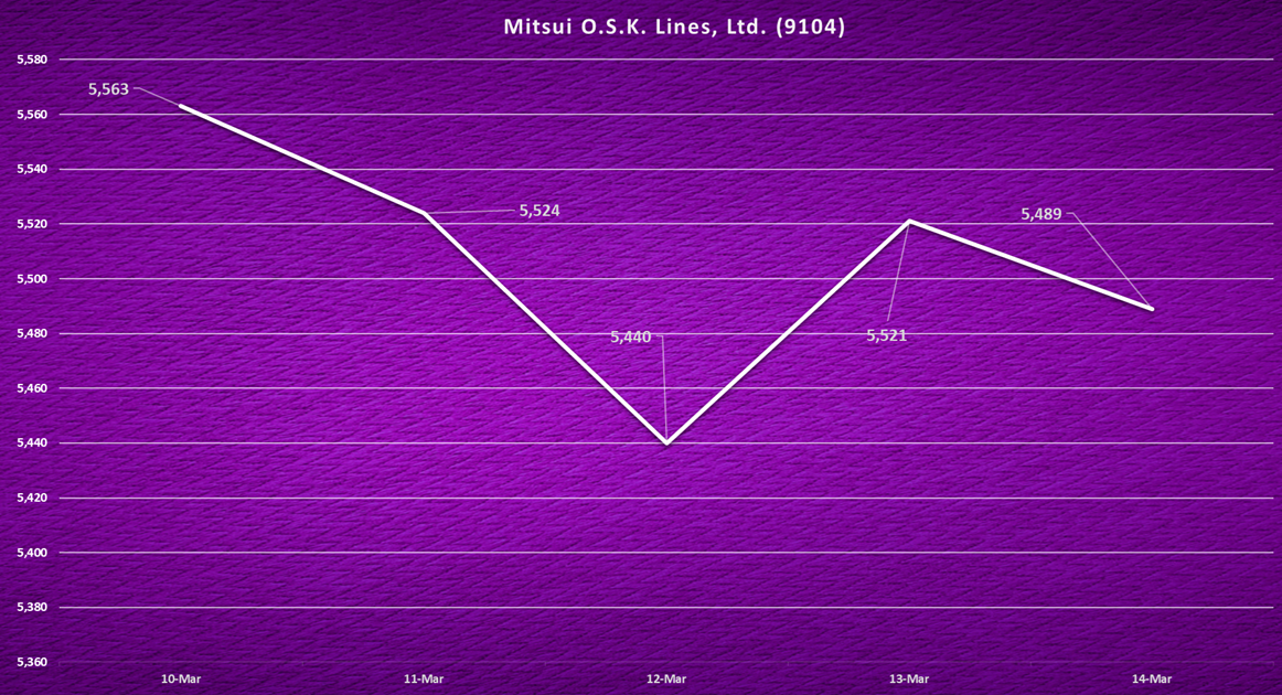 Mitsui O.S.K. saw fluctuations but remained largely stable, closing at ¥5,486 after reaching a midweek low of ¥5,440. This indicates resilience despite external market pressures. The company’s diversified portfolio, including bulk carriers, LNG transport, and container operations, helps cushion against volatility. Investors will be monitoring its contract negotiations and fleet efficiency for further direction.