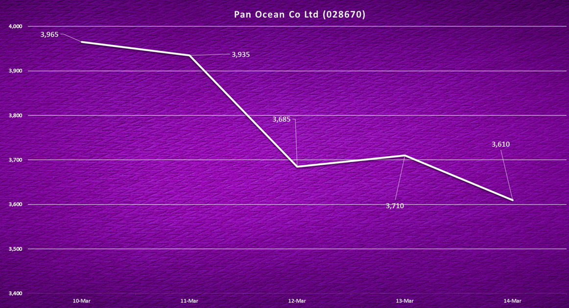 Pan Ocean saw a consistent downtrend, falling from ₩3,965 to ₩3,610. This suggests investor concerns over the bulk shipping sector, potentially due to weakening demand in dry bulk commodities. While Pan Ocean has strong regional positioning, fluctuating freight rates and global economic uncertainties are likely weighing on its stock. A turnaround will depend on improved demand for iron ore, coal, and agricultural commodities.