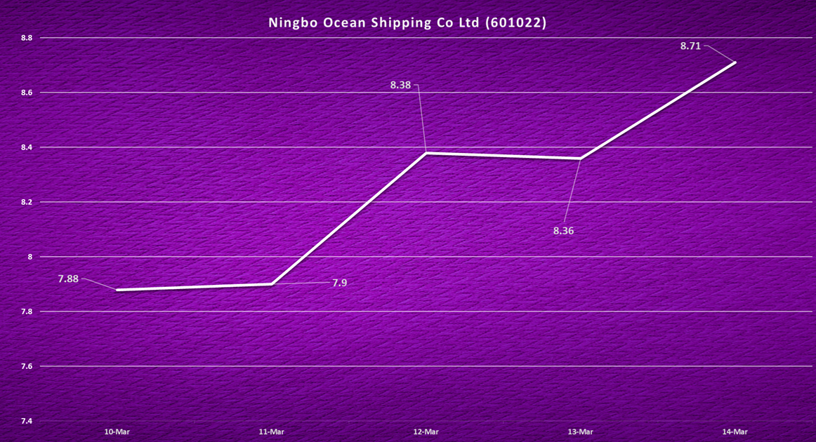 - Ningbo Ocean Shipping Co Ltd (601022) – ¥