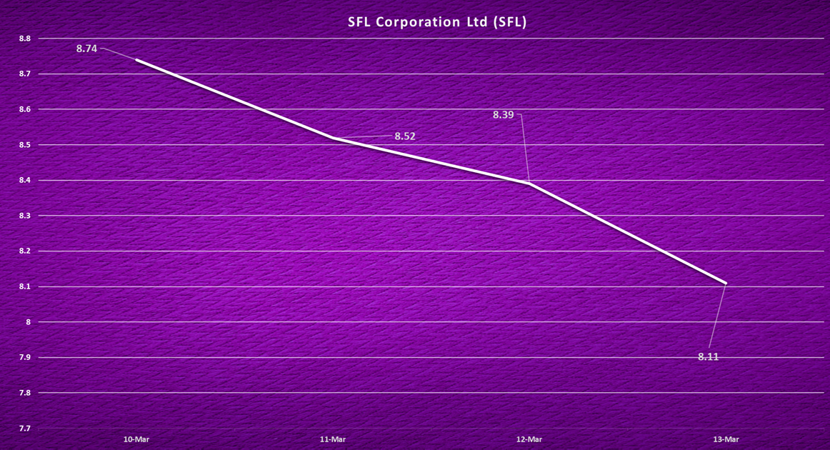SFL trended downward throughout the week, declining from US$8.74 to US$8.11. This suggests investor caution, possibly due to concerns over shipping rate stability or operational challenges. However, as a diversified maritime leasing firm, SFL’s long-term contracts could provide some buffer against short-term market swings.
