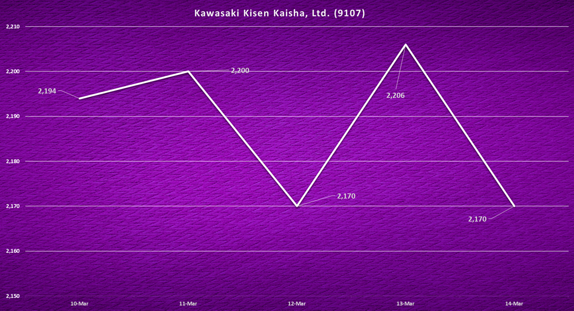 K Line exhibited minor fluctuations, ending the week at ¥2,170 after reaching a midweek high of ¥2,206. This movement suggests a balanced market outlook, with investors monitoring operational performance and industry-wide trends. K Line’s exposure to bulk, car carriers, and LNG shipping offers diversification, but freight rate trends will remain a key factor in future movements.