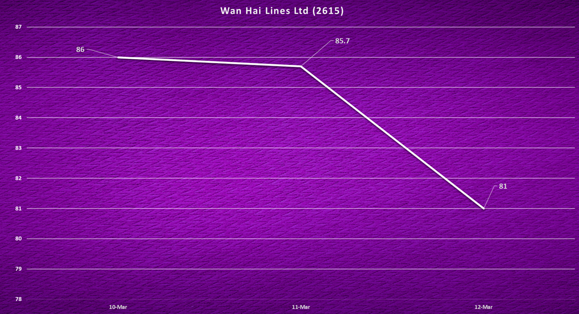 Wan Hai encountered a more pronounced decline, dropping from NT$86 to NT$81 by week’s end. This signals investor caution, likely driven by market-wide concerns about overcapacity and fluctuating regional trade volumes. Despite strong intra-Asia operations, the company may face margin pressure if rate volatility persists. Rebounding from this level could depend on operational adjustments or broader improvements in container demand.