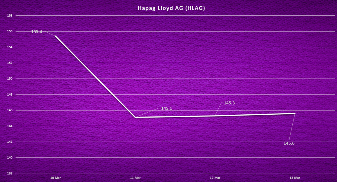 Hapag-Lloyd experienced a significant pullback from €155.4 to €145.1 before stabilizing slightly. The drop reflects market sentiment surrounding declining freight rates and potential demand slowdowns. The company’s cost-control strategies and long-term contracts may offer some stability, but near-term fluctuations in spot pricing remain a key factor influencing investor confidence.