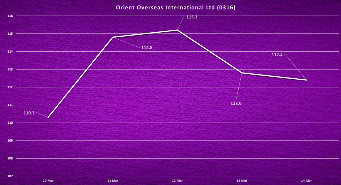 OOIL started strong, rising from HK$110.3 to a weekly high of HK$115.2 before settling at HK$112.4. The upward momentum in the first half of the week suggests positive investor sentiment, potentially driven by improving freight conditions or operational efficiencies. However, the slight retracement at the end hints at market caution or profit-taking. As one of the key players in trans-Pacific and intra-Asia routes, OOIL remains well-positioned, but broader economic factors will determine its next move.