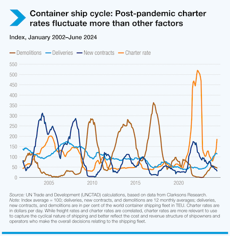 Rerouting, port congestion and rising operational costs saw freight rates surge in 2024. The report cited the Shanghai Containerized Freight Index (SCFI) that by midyear had more than doubled from late 2023 on longer shipping distances, increased fuel consumption and higher insurance premiums.