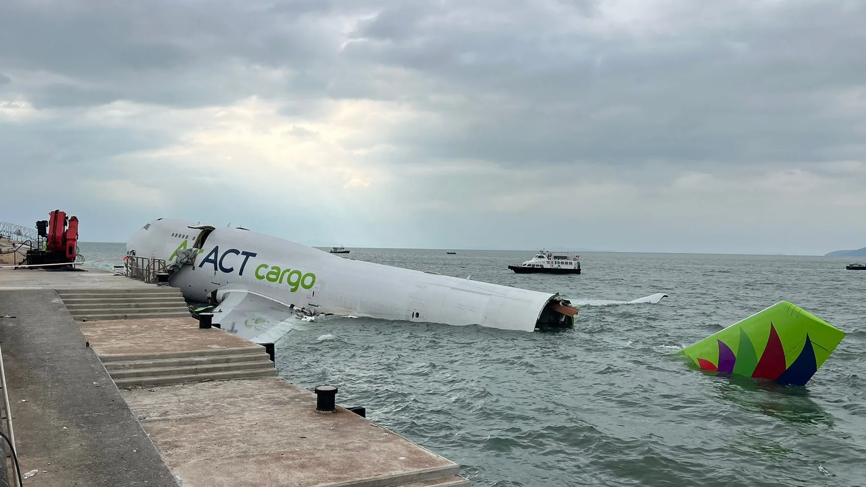 AirACT, based in Turkey, was operating the aircraft under a turnkey lease agreement for Emirates SkyCargo. The flight originated in Dubai and had a crew of four. The plane crashed through a fence and knocked the patrol car into the ocean.