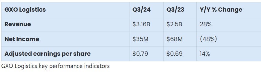 GXO saw third-quarter organic revenue growth of 3%, which has accelerated sequentially throughout the year, said CFO Baris Oran.