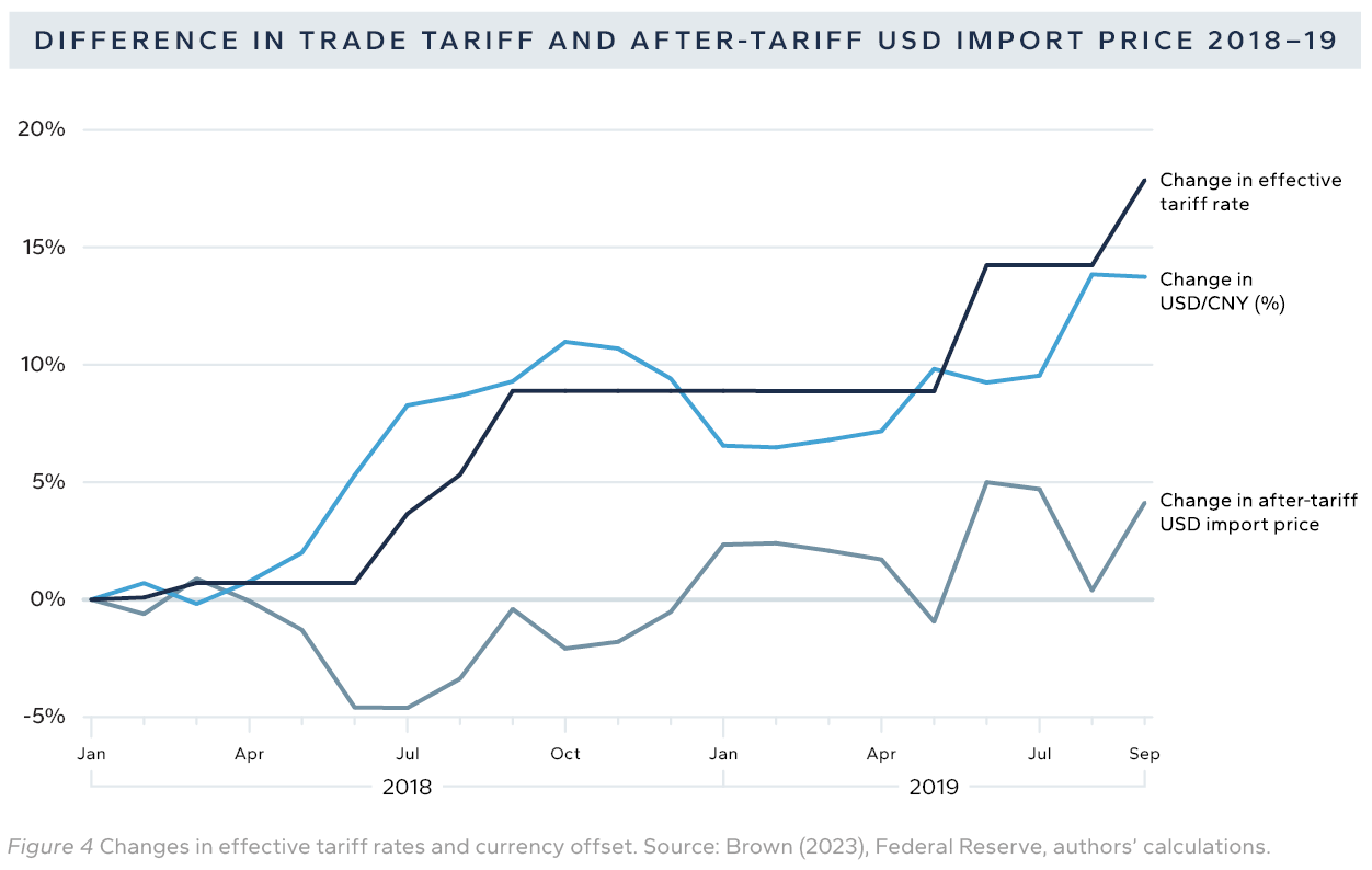 This relationship between tariff rates and exchange rates is something Miran calls “currency offset” — a concept necessary to understand how tariffs work in practice.