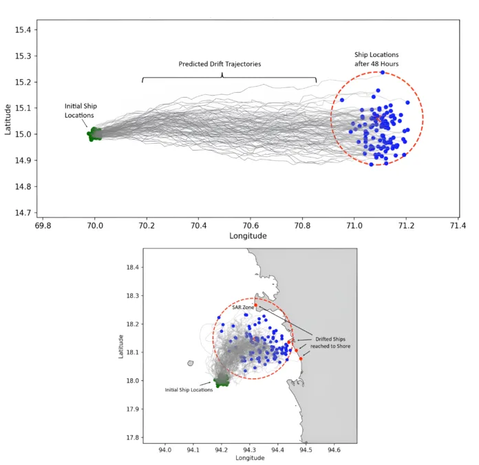Developed in collaboration with the Indian Institute of Technology Bombay (IIT Bombay), the system predicts the drift paths of ships that have lost propulsion. This capability allows maritime authorities and response teams to plan faster, more accurate search and rescue operations.