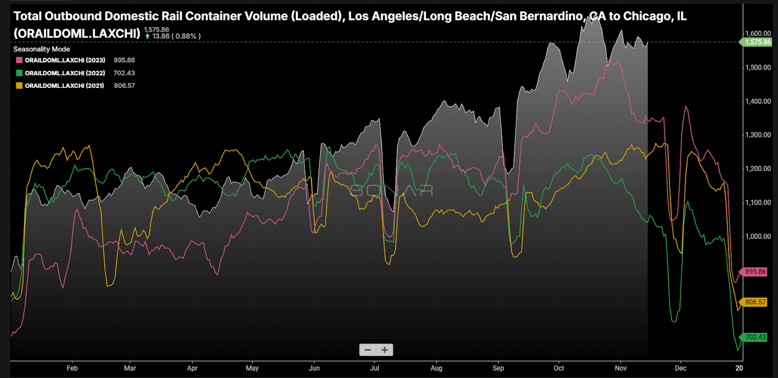 Chart of the Week: Outbound Loaded Rail Container Volumes, Outbound Tender Volume Index – USA SONAR: ORAILL.USA, OTVI.USA