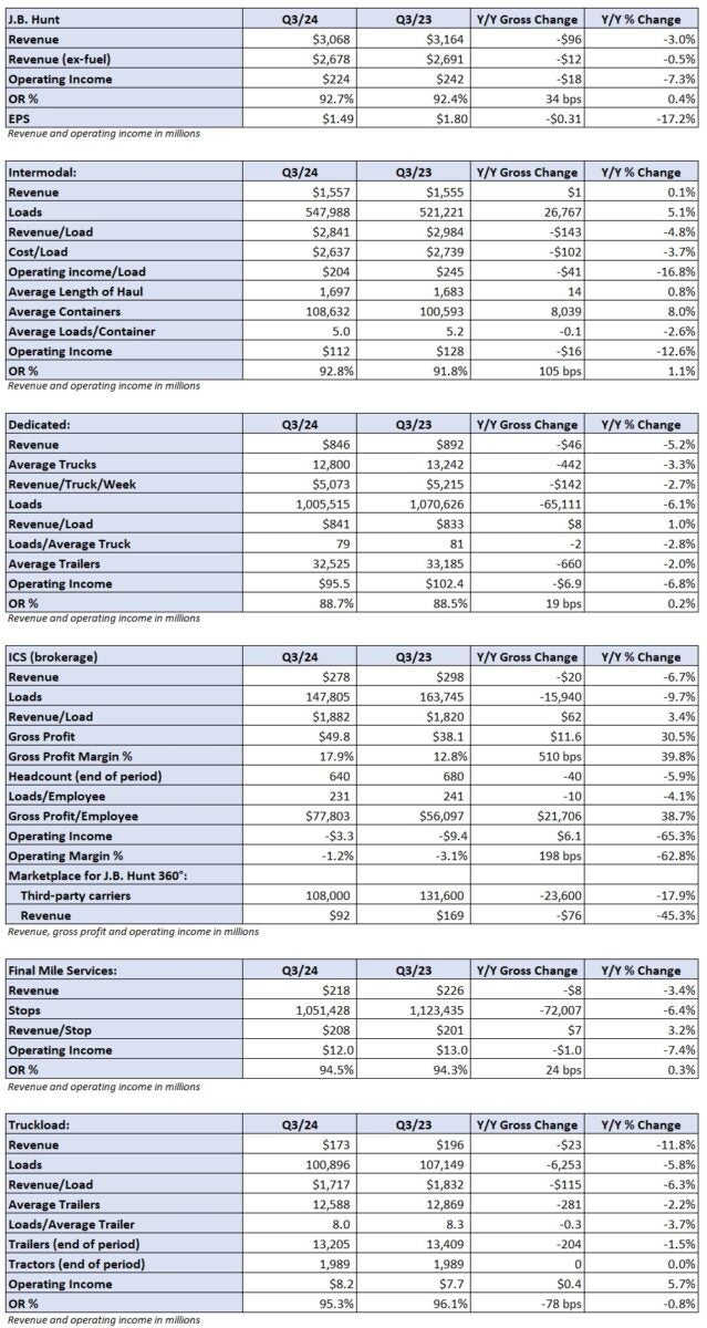 J.B. Hunt will host a call at 5 p.m. EDT on Tuesday to discuss third-quarter results.