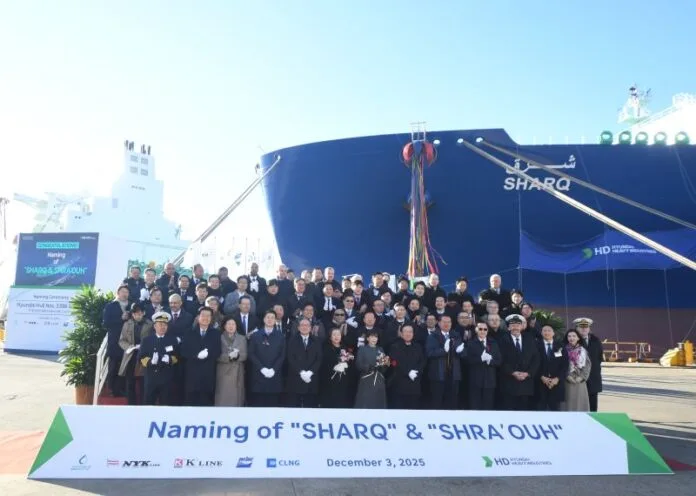 Kawasaki Kisen Kaisha, Ltd. (“K” LINE) has announced the naming of two new 174,000 m³ LNG carriers built for QatarEnergy. The ceremony took place on 3 December at HD Hyundai Heavy Industries Co., Ltd., with both vessels scheduled to serve QatarEnergy’s expanding global LNG logistics network.