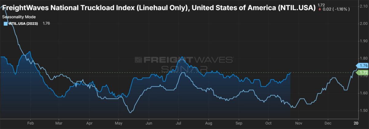 Knight-Swift Transportation said it is seeing normal seasonal demand trends and that it is capturing rate increases in its truckload business. It tempered the update by saying what happens to demand after Thanksgiving is an unknown that will ultimately impact at least the beginning of next year’s bid season.