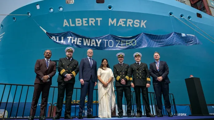 Vincent Clerc, CEO of A.P. Moller – Maersk, hosted the name-giving ceremony, which was attended by India’s Minister of Ports, Shipping and Waterways, Sarbananda Sonowal, Minister of State for Youth Affairs and Sports, Raksha Khadse, diplomats, government authorities, customers, partners and Maersk employees.