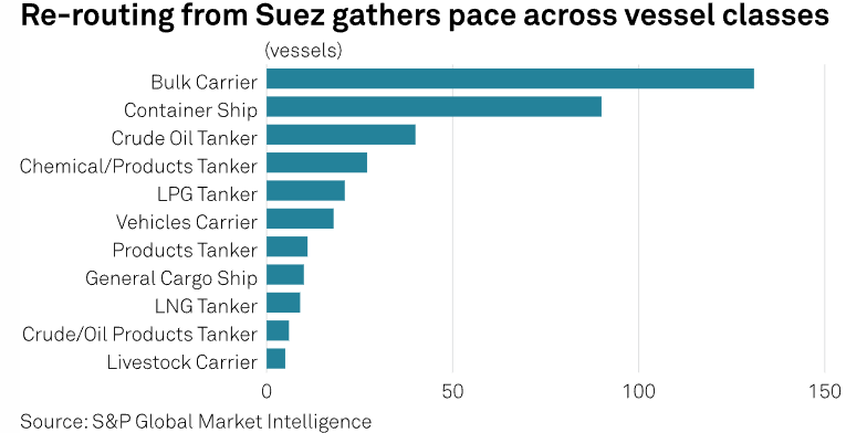 The impact of these security challenges is tangible. Houthi drone and missile attacks have severely disrupted shipping routes, affecting global trade flows. According to recent data taken by Safety and Shipping Review for 2024 by Allianz Commercial, transits through the Suez Canal dropped by over 42% at the beginning of 2024, with container traffic plummeting by 82% and specialized car-carrying ships in the Red Sea decreasing by more than half compared to the previous year.