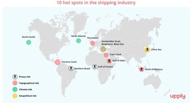 According to an analysis by Upply, the Gulf of Aden and Gulf of Guinea are ranked as significant hotspots for maritime trade. The high scores for both regions highlight their current and potential risks. Given the escalating threats and instability, particularly with the possibility of new, inexpensive weapons affecting maritime security, the Gulf of Guinea could soon emerge as another major region of instability.