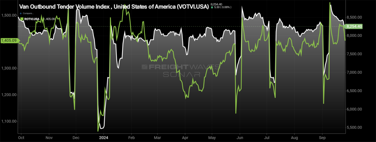 The freight market is ending September on a sour note as tender volumes took a leg lower to close out the quarter. An International Longshoremen’s Association strike possibly starting Tuesday could create disruptions to the demand side, especially once the strike ends, with the disruptions being much more severe the longer the dispute drags on.