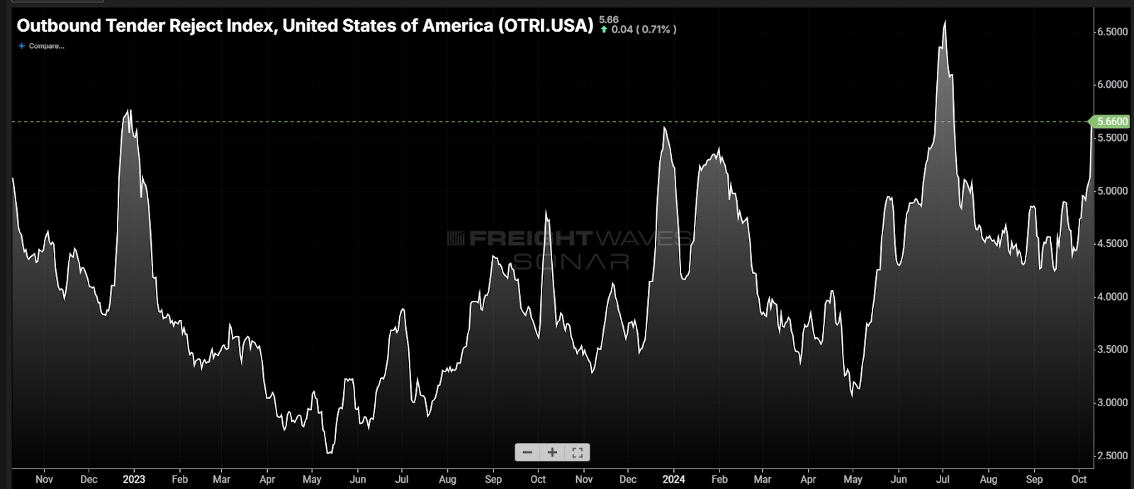 October is traditionally a slower month for trucking, making the rejection rate jump that much more significant. The transportation market appeared to still have enough resiliency to handle two major events, but the jury is still out on the third. A lot will be learned about where we are in the current oversupplied freight cycle in the coming weeks, leading into retail peak shipping season.