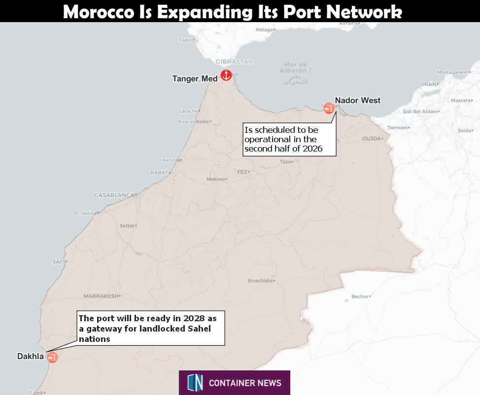 The strategy centers on synchronized commissioning of two massive facilities: Nador West Med on the Mediterranean coast, scheduled for late 2026, and a $1 billion Atlantic port in Dakhla by 2028.