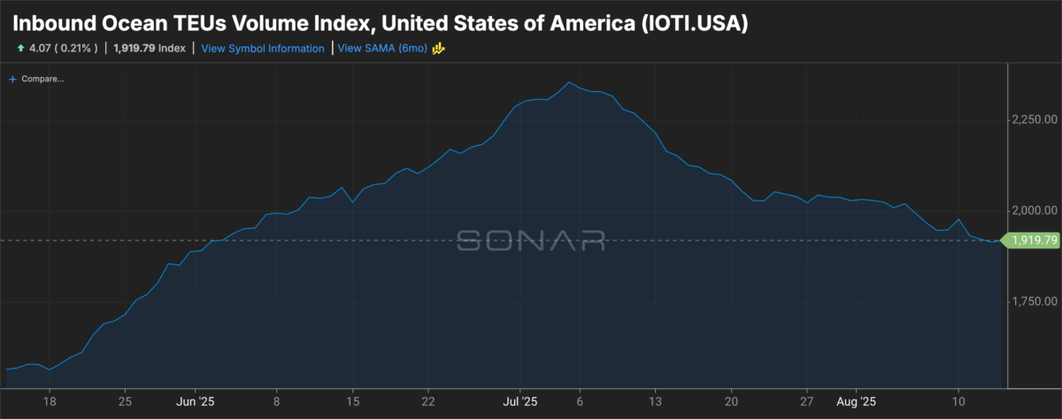 So while the busiest U.S. ports hailed tariff-averse volume records in July, that elation was short-lived as container rates continue to fall on demand apparently sated by frontloading.