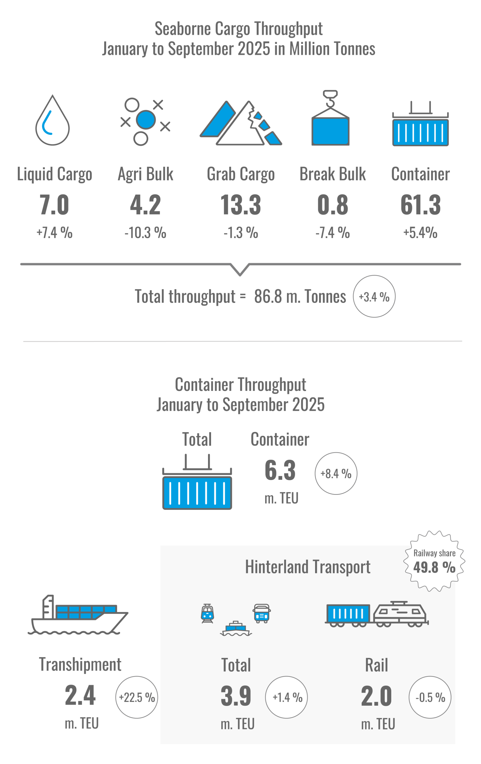 Throughput at the Port of Hamburg remained robust after the third quarter of 2025. While U.S. container traffic declined, trade with Asia and Europe continued to grow.