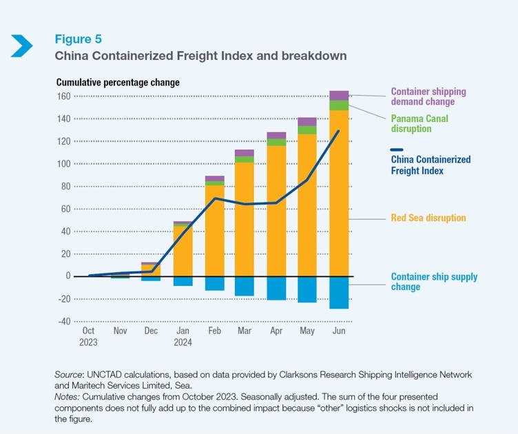 UNCTAD, the United Nations’ trade and development body, recently released its latest annual shipping report with the Review of Maritime Transport 2024 clearly showing how the Houthis have helped ensure the bottom lines of containerlines remain in highly profitable territory this year.