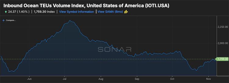 The NRF forecast calls for October volume of 1.99 million TEUs, a decrease of 11.5% y/y, and November volume of 1.85 million TEUs, down 14.4%. Expected December traffic is forecast at 1.75 million TEUs, down 17.9%.