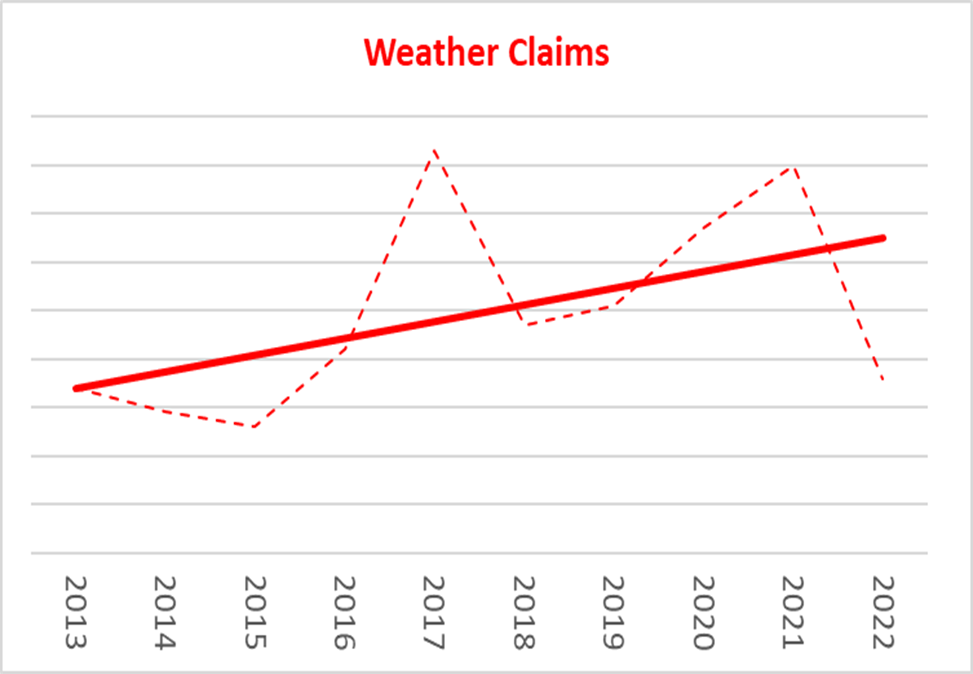 TT’s historical data reveals a steady increase in claims related to weather-induced losses over the past decade. These include a variety of damages, such as navigational and berthing accidents, crane and port equipment collapses, container stack blowovers, and flooding of buildings and infrastructure.