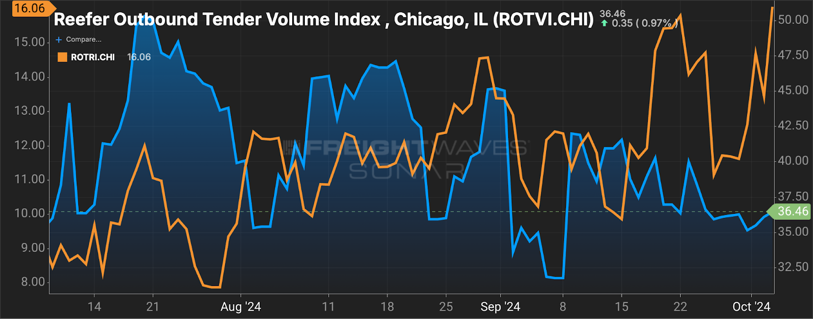 This week’s cool market is home of the Windy City, none other than Chicago. Reefer volumes have seen a capacity crunch recently: Outbound reefer rejection rates have sharply risen, going from 11.74% to 16.06% in the past week for a 491-basis-point increase week over week. While reefer rejection rates were rising, reefer outbound tender volumes have taken a much slower approach. Reefer outbond tender volumes have risen 1.45% w/w, hardly keeping up with reefer rejection rates. Rejection rates at 16% indicate some inflationary pressures in the spot market. Rates should be higher out of Chicago than other parts of the country. Don’t expect rates to come down till rejection rates are solidly under 10%.
