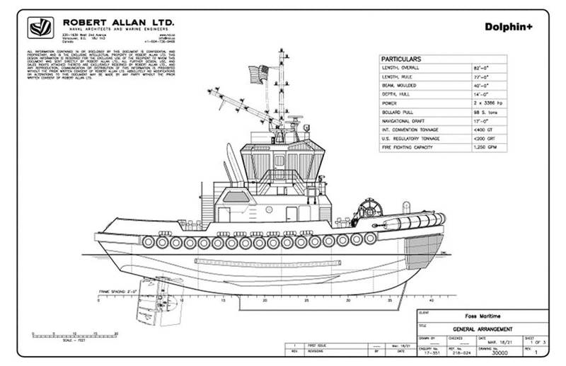 To be built by Eastern Shipbuilding, the vessels are a RApport 2600 design by Canadian naval architect Robert Allan and will measure 25.6 x 12.8m with a 5.5-m draft. Accommodation will be provided for eight persons, and they will be operated by Foss Maritime.