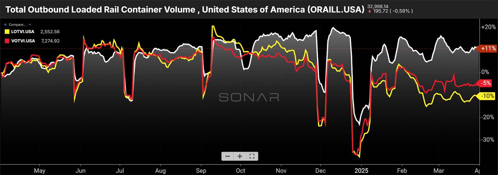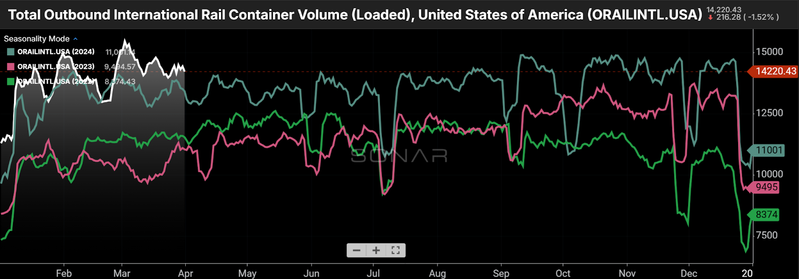 International intermodal volume grew 5.2% year over year in Q1 against a tough year-ago comparison. (Chart: SONAR)