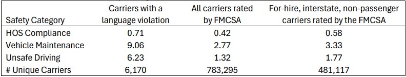 “The findings … do not suggest that a lack of English-language proficiency causes these violations and poor carrier safety scores, just that they are correlated,” the study points out, noting two possible explanations for the correlation.