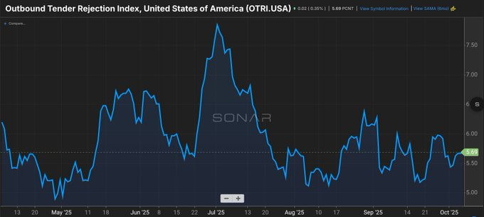 In fact, trucking volumes are anemic, and tender rejections are sitting at 5.5%.