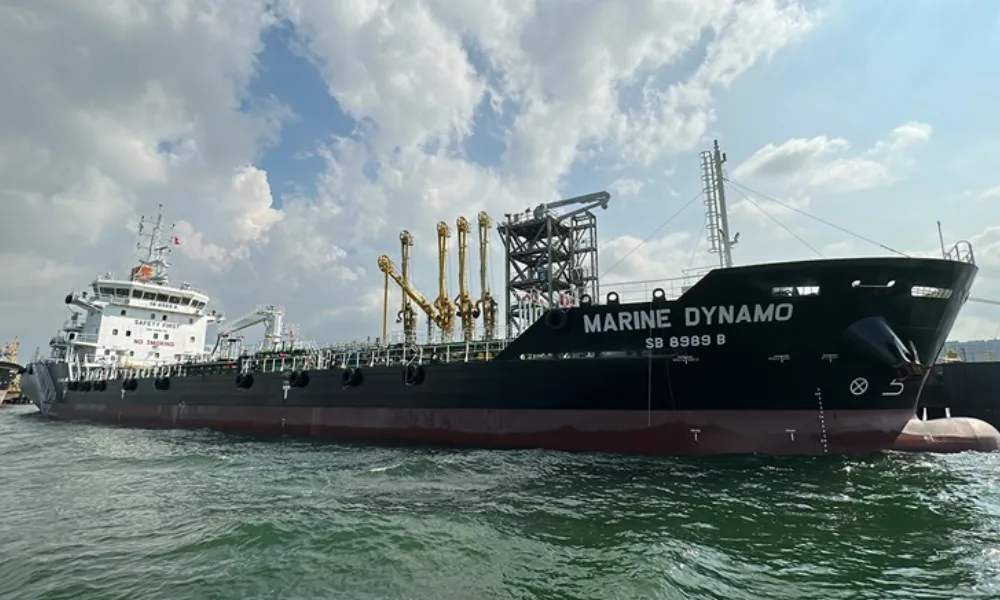 The Marine Dynamo is an 8,300 dwt bunker tanker built in 2023, owned by Vitol Bunkers and chartered by Chevron. The 56,500 dwt Flag Gangos was built in 2013 and is owned by Greece’s Golden Union.