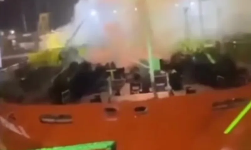 Video footage shared on social media showed thick black smoke rising from the ship’s bow. The fire was brought under control later in the day, with no damage reported to nearby vessels or port infrastructure.