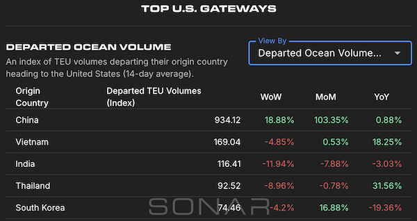 Still, data from SONAR showed shippers taking advantage of the tariff pause. Through June 16 loaded container volume headed to the U.S. from Chinese ports was even with year-ago levels.