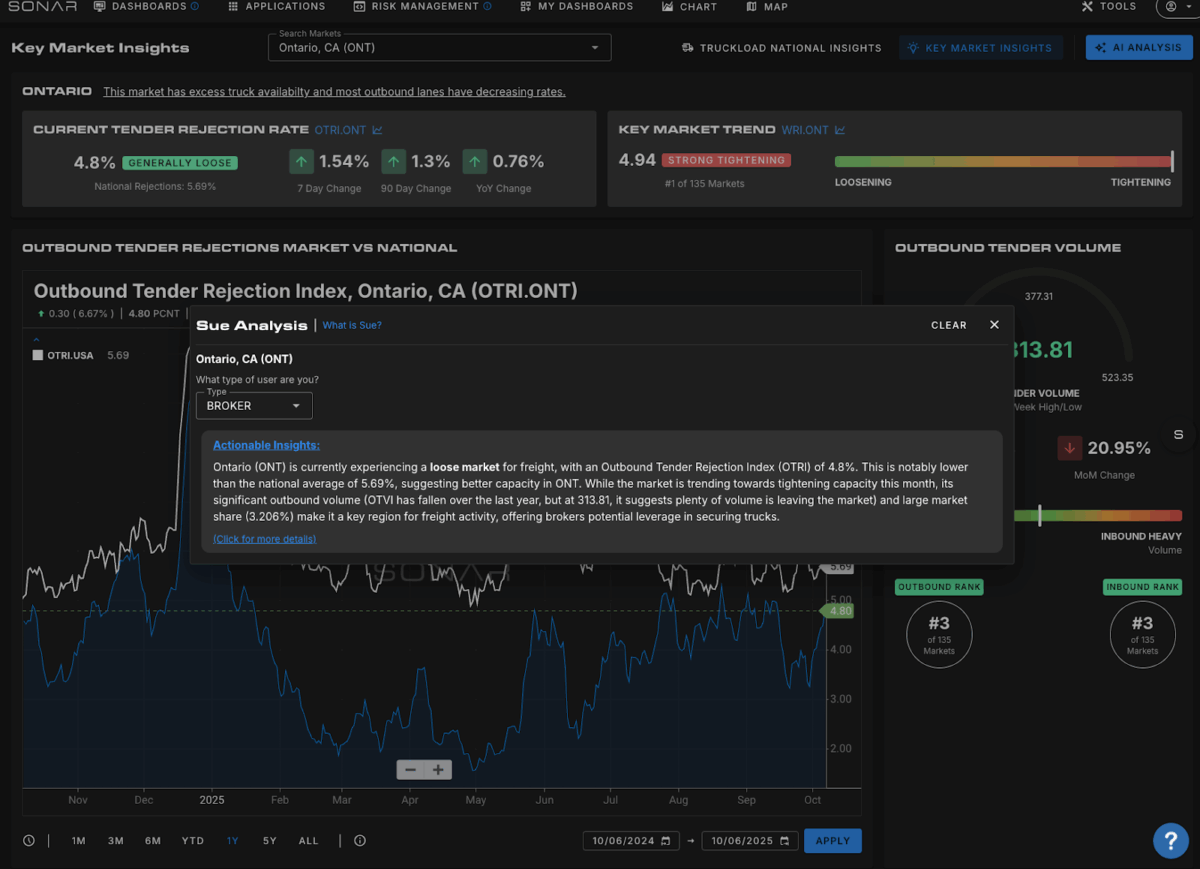 With the AI Analysis Layer in Key Market Insights, SONAR breaks new ground in data interpretation. This intelligent layer automatically generates reports on trend movements, potential regional disruptions, and strategic opportunities, essentially writing the story behind complex datasets. It’s a critical development for users needing foresight in rapidly shifting markets.