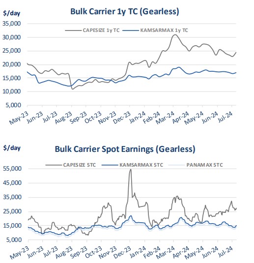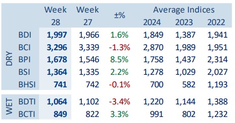 The shipbroker added that “the dry bulk market enjoys a prolonged period of healthy rates. Interestingly the average BCI for the first half of 2024 is 2,871 points, almost 16% higher compared to the average of 2,465 points of the previous semester and almost double the average points of the first semester 2023. Similarly, the average BPI and BSI for the first semester of 2024 is 1,757 and 1,278 points respectively, around 14% up each compared to the average of second half 2023, and 34% up each compared to the average of first half of 2023. Finally, the average of BHSI has also experienced a 17% increase averaging to 699 points in the first half of 2024 compared to second half of 2023, while is also 25% up compared to the average of the first half of 2023”, Xclusiv concluded.