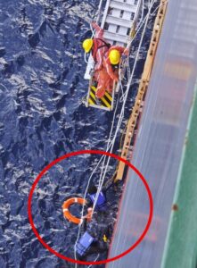 Following the rescue, both survivors—identified as nationals of Guatemala and Ecuador—were brought safely onboard. Initial assessments confirmed they were in stable condition, and they are now receiving warmth, nourishment, hydration, and medical observation onboard the vessel.