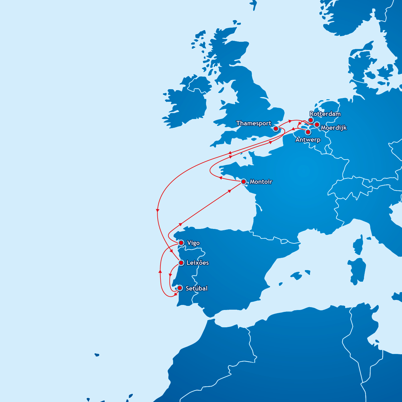 The NWC Portugal service will be operated by two 1,000-TEU owned vessels in a fixed 14-day rotation, now expanded to include weekly Vigo and Thamesport calls.